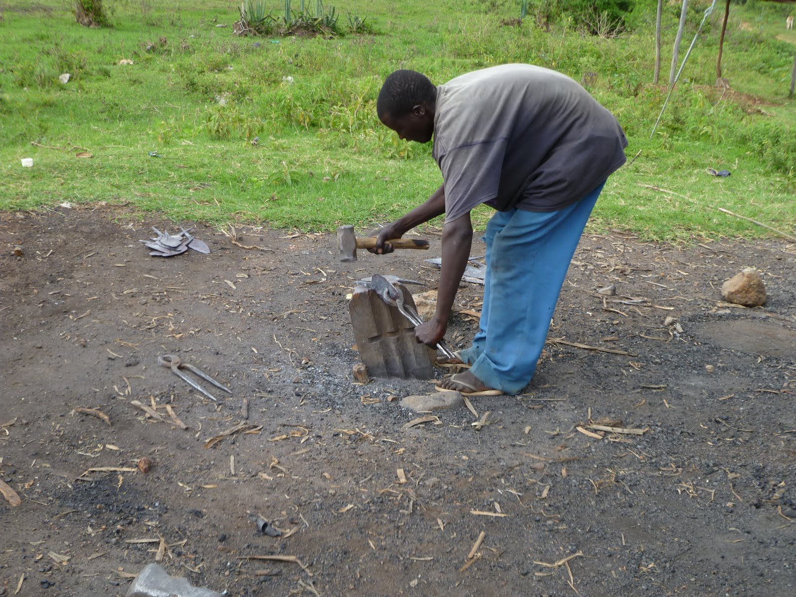 On our way back to Rodi, Michael stops at the “village blacksmith” and we watch a while as he hammers iron hoe blades. His forge (coal fire-pit) has a people-powered blower (hooked up to a bike wheel with a handle for manual turning). I had noticed the metal plow sitting in Michael’s yard — with a team of oxen, he had gotten very familiar with that plow just a month prior. I could imagine that it came from that same local smithy, his forge and his hammer.
